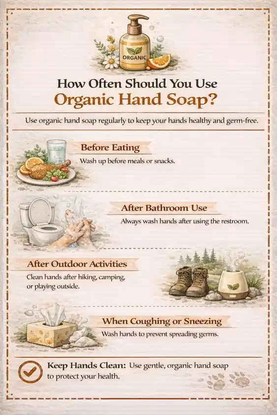 Organic, non-toxic hand soap should be used every time proper handwashing is recommended—before eating, after using the restroom, after returning home, and after handling food or shared surfaces. The key difference is that organic formulas are designed for frequent daily use without drying or irritating skin.